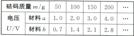 (2)当砝码质量超过200g后,发现材料a两端的电压不再明显增加,原因可能是________________________。
