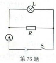 76.(2025·苏州)如图所示电路中,灯泡L的规格为“6V 3W”。闭合开关S,灯泡正常发光,电流表示数为1.5A。求: