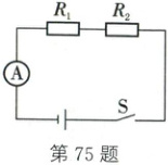 75.(2025·贵州)如图所示电路,电源两端电压恒为3V,定值电阻R1的阻值为10Ω。闭合开关S,电流表示数为0.2A。