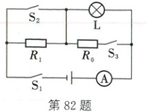 82.(2025·达州)如图所示,电源电压恒定不变,定值电阻R1=28Ω,灯泡L标有“6V 3W”字样(不考虑灯丝电阻变化)。只闭合S1、S2,灯泡L正常发光;再闭合S3,电流表示数变化了0.25A。请计算: