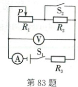 83.(2025·安徽)如图所示的电路中,电源电压保持不变,滑动变阻器R1的最大阻值为20Ω,R2、R3均为定值电阻,其中R3=10Ω。当开关S1闭合,S2断开,滑动变阻器的滑片P移至最左端时,电压表的示数为10V,电流表的示数为0.40A。