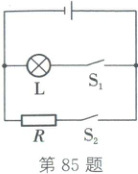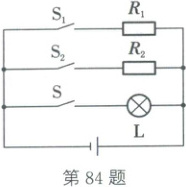84.(2025·广安)有同学提出:冬天写作业时光线较暗,手又冷,要是我们设计一款既能照明,又能暖手的桌垫就好了。他的想法得到了同学们的支持。经过多次改进,同学们设计了如图所示的电路,R1、R2为电热丝,其中R1=36Ω,仅做照明的灯泡L标有“12V 0.3A”的字样。当开关S闭合时,灯泡L正常发光。求: