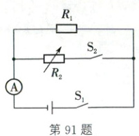 91. (2025·江西)如图所示,电源电压恒为9V,$R_{1}$为定值电阻,$R_{2}$为电阻箱(能够表示出阻值的变阻器)。