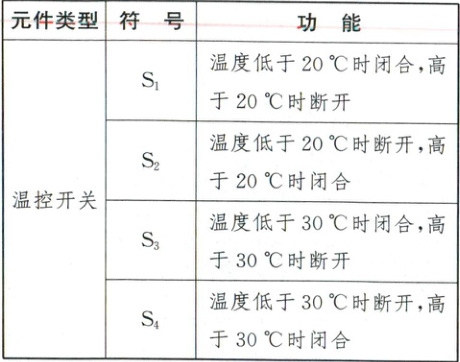 为此,他找到了4个温控开关(功能见表),从中选择两个开关设计了如图所示的电路。
