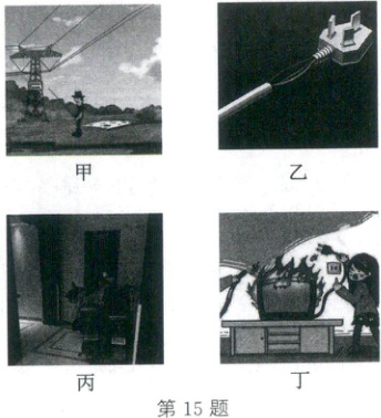 )A.图甲,在高压线下钓鱼