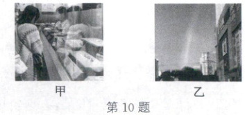 10. (2025·南充)研学活动中,图甲是某同学在参观博物馆时,通过玻璃橱窗看到自己的影子,这是由光的
