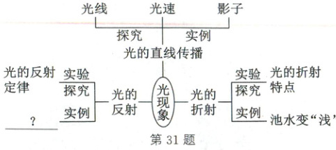 31. (2025·山西)小亮在梳理光现象知识时绘制了如图思维导图,其中一个分支的实例内容有缺失。下列选项能正确补充的是(