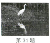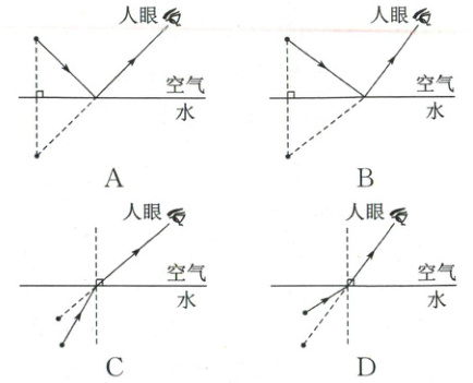 34. (2025·天津)如图所示,一只白鹭正在七里海湿地觅食,平静的水面映出它的身姿。选项中能正确表示人看到白鹭倒影的光路是(