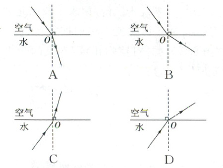 33. (2025·扬州)如图,筷子斜插在水中,看见水中的筷子向上弯折,解释这一现象的光路是(
