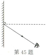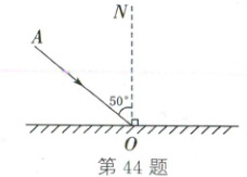 44. (2025·青海)在图中,根据入射光线AO画出反射光线OB,并标出反射角的度数。