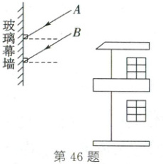 46. (2025·广西)我们应该警惕“光污染”。请在图中画出太阳光线A、B照射到玻璃幕墙后的反射光线。