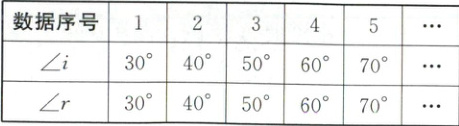 测量∠i和∠r的度数,将数据记录在下表中。分析表中数据,得出结论:在反射现象中,反射角