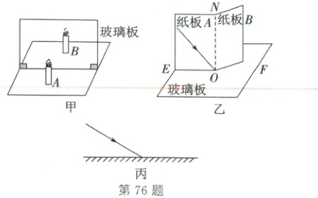 76. (2025·广安)小明积极响应学校规范仪容仪表的号召。有一次当他走近平面镜时,他发现自己的像“变大”了,于是他提出:像的大小与物体的大小有什么关系呢?他用图甲的实验装置来探究平面镜成像特点。根据所学知识回答下列问题。