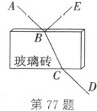 77. (2025·贵州)如图所示是实验小组在“探究光的折射特点”的实验中拍下的一张照片。照片显示的是激光笔发出的光经空气和矩形玻璃砖传播时所呈现的光路。现根据这张照片,来探究下列问题: