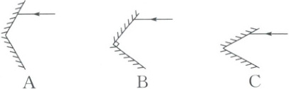 (3)下列选项中,两块平面镜成一定夹角构成角反射器,一束光射向角反射器,经两次反射就能模拟天都一号上的角反射器效果的是(