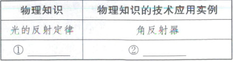 (4)文中介绍的角反射器、激光测距等技术,都是物理知识的具体应用,科学家不断将科学知识应用于技术创新,推动了人类社会的进步。请仿照表中示例,再举出一个物理知识应用于技术方面的实例,补全表格中①②的内容。