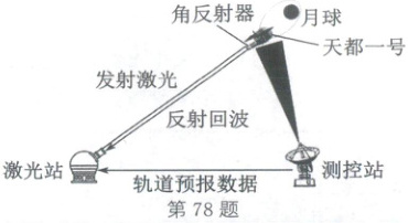 的地月空间激光测距技术试验。(2)在激光测距试验中,从激光站发出激光,经天都一号上的角反射器反射,到激光站接收到回波信号所用时间约为