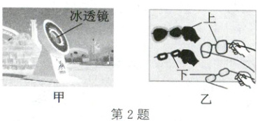 3. (2025·遂宁)西晋《博物志》中云:“削冰令圆,举以向日,以艾于后承其影,则得火。”如图所示,这是我国古代劳动人民把冰制成透镜,利用它对太阳光的