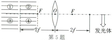 5. (2024·泰州)在探究凸透镜成像规律的实验中,发光体与凸透镜的位置如图所示,清晰的像应成在图中