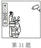 31. (2024·常州)《重庆市消防条例》规定:2024年7月1日起,禁止携带电动自行车或其电池进入电梯轿厢。一旦有人违规操作,会被电梯内的摄像头拍摄成像并智能识别,电梯将停止运行并发出声、光警报。如图所示,某次警报时,摄像头凸透镜成像的像距为10.1 mm,则凸透镜的焦距可能为(