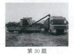 30. (2025·大兴安岭)如图是龙江大地丰收的场景,运粮的车辆和联合收割机在平整的稻田上以同样快慢、向同一方向前进。关于此场景,下列说法正确的是(