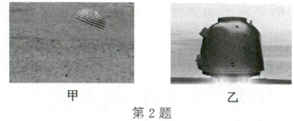 2. (2025·眉山)2025年4月30日,神舟十九号返回舱在东风着陆场成功着陆,神舟十九号载人飞行任务取得圆满成功!返回舱回收着陆阶段,减速伞拉出并降速,如图甲所示,以伞为参照物,返回舱是