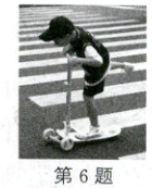 6. (2025·龙东地区)如图所示,小朋友用力向后蹬地,能使他的滑板车沿着水平方向向前运动,这是因为物体间力的作用是