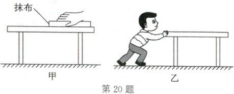 20. (2025·泸州)小复周末参加家庭劳动。如图甲所示,他用抹布向左擦拭桌面时,抹布受到桌面的摩擦力方向向