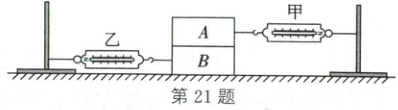 21. (2025·凉山)如图所示,保持物块A与B位置不动,缓慢向两侧移动铁架台,整个装置静止后,弹簧测力计甲、乙的示数分别为5N和3.5N,则A所受摩擦力的方向水平向