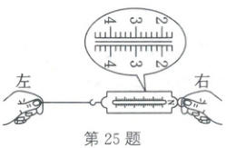 25. (2025·成都)小聪打扫实验室时,发现地上有头发。他想测量头发能承受的最大拉力,于是把一根头发拴在弹簧测力计上用力拉,如图所示。下列说法正确的是(