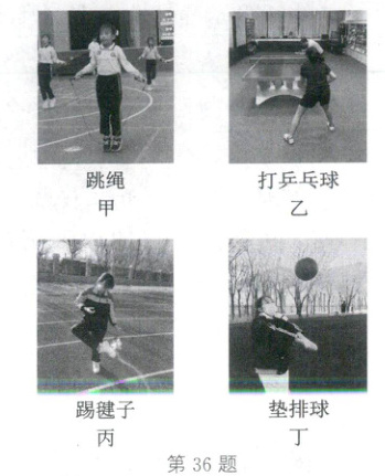 36. (2025·陕西 B 卷)为了增强学生体质,促进身心健康发展,学校开展了形式多样的体育运动。如图所示,对下列各项运动中所涉及的物理知识分析正确的是(