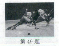 49. (2024·淮安)2024 年 2 月 17 日,第十四届全国冬季运动会在内蒙古呼伦贝尔拉开帷幕。如图所示是短道速滑项目的精彩瞬间。下列说法中正确的是(