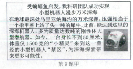 9. (2025·湖北)小凯对图甲中新闻报道划线的内容产生了好奇,通过实验研究液体内部的压强。