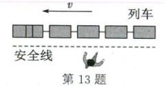 13. (2025·河北)如图所示,小明在站台上的安全线外候车,是为了防止列车进站时,列车附近的空气流速大,压强