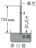 12. (2025·凉山)如图所示,该实验是托里拆利第一次测出大气压强值的实验,水银对玻璃管中 A 点的压强