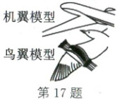 17. (2025·江西)如图所示,飞机的机翼是仿照鸟的翅膀设计出来的,气流经过机翼下方的流速比上方的流速小,机翼下方的空气压强比上方的空气压强