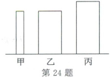 24. (2025·广安)如图所示,同种材料制成的甲、乙、丙三个实心长方体放于水平面上,高度$h_{甲}=h_{乙}<h_{丙}$,底面积$S_{甲}<S_{乙}=S_{丙}$,下列判断正确的是(