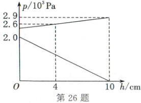 26. (2025·宜宾)(多选题)质量分布均匀的实心正方体$A$、$B$置于水平地面上,将$B$沿水平方向截取高为$h$的柱体,并将截取的柱体叠放在$A$上,改变截取的高度$h$,得出$A$、$B$对地面的压强$p$与截取高度$h$的关系如图,$g$取$10N/kg$。下列说法正确的是(