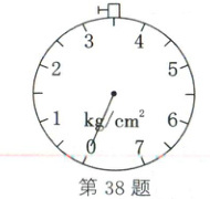 38. (2025·广州)如图是用于测量汽车轮胎内气体压强的胎压计,其数值的单位是“$kg/cm^{2}$”,表示$1cm^{2}$的受力面积上,所受的压力大小相当于$1kg$物体的重力大小。若$g$取$10N/kg$,则$1kg/cm^{2}$相当于(