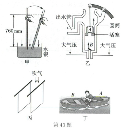 B.图乙:抽水机工作时,提起活塞,阀门$B$因外界大气压大于活塞下方气压而打开