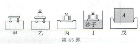 45. (2024·齐齐哈尔)在探究“影响压力作用效果的因素”实验中,实验小组利用小桌、砝码、海绵、沙子等器材在水平台面上进行探究。