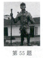 55. (2025·吉林)如图是为了纪念老红军谢宝金携带一台较重的发电机完成长征而立的铜像。若谢宝金和发电机的总质量是$ 132 kg $,站立时与地面接触的总面积为$ 0.04 m^2 $。求:($ g $取$ 10 N/kg $)