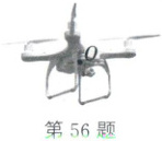 56. (2024·淮安)无人机在许多领域发挥着重要的作用。如图所示为某型号无人机,整机质量为$ 6 kg $,静止时两起落架与地面的总接触面积为$ 0.02 m^2 $。($ g $取$ 10 N/kg $)