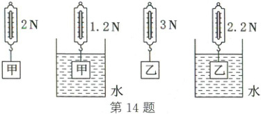 14. (2025·成都)在探究“影响浮力大小的因素”实验中,小明选用体积相同的实心金属块甲和乙,实验过程如图所示,他探究的问题是(