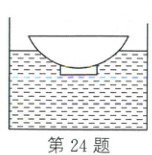 24. (2025·烟台)如图所示,小明洗碗时发现,向漂浮在水面上的碗中加水,碗浸入水的深度越来越大,当水量增加到一定程度时,碗浸没水中,直至沉底。假如碗里水的质量是缓慢均匀增加的,则下列关于碗受到的浮力随时间变化规律的图像可能是(