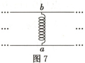 7.(2025年1月·八省联考河南卷)无限长平行直导线$a$、$b$每单位长度之间都通过相同的绝缘轻质弹簧连接。如图7所示,若$b$水平固定,将$a$悬挂在弹簧下端,平衡时弹簧