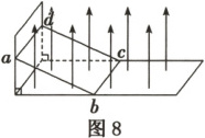 8.AB 解析:根据楞次定律可知线框内产生一个沿adcba方向的感应电流,同时产生焦耳热,所以线框下滑过程中机械能逐渐减小,故A正确,C错误;线框下滑过程中,线框平面与磁感线方向夹角增大,所以穿过线框的磁通量逐渐增大,B正确;线框下滑过程中,只有bc边切割磁感线,刚开始E = $\frac{\Delta\Phi}{\Delta t}$ = BLvtx,而vtx = 0,所以$\frac{\Delta\Phi}{\Delta t}$ = 0,线框到水平位置时$\frac{\Delta\Phi}{\Delta t}$ = 0,而下滑过程中有感应电流,即$\frac{\Delta\Phi}{\Delta t}$ ≠ 0,所以在下滑过程中$\frac{\Delta\Phi}{\Delta t}$先增大后减小,D错误。