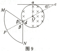 的夹角均为$\beta = 60°$。圆弧$MPN$用金属片制
