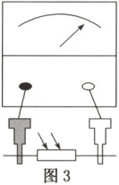 4. 如图 3 所示,将一光敏电阻连入多用电表两表笔上,将多用电表的选择开关置于电阻挡,用光照射光敏电阻时表针的偏角为 θ。现用手掌挡住部分光线,表针的偏角变为 θ',则可判断(