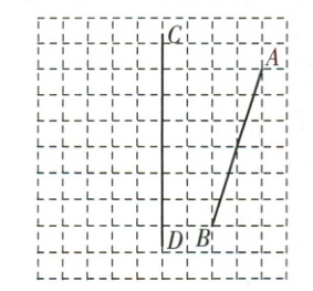 (1)将线段$AB$向右平移5个单位,再向上平移3个单位得到线段$CD$,请画出线段$CD$;